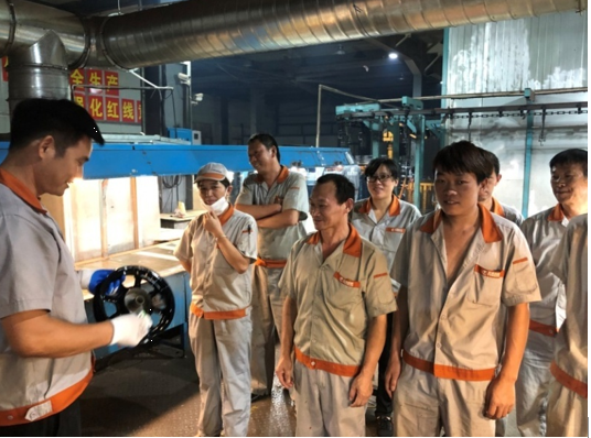 2019年9月17日,針對(duì)前期本田客戶反饋特黑GJBA軸套與制動(dòng)轂周邊出現(xiàn)白色異物的情況,生產(chǎn)部特組織對(duì)GJBA擦修工序員工展開擦銹技能培訓(xùn),此次培訓(xùn)由涂裝車間主任朱新華主講,分別結(jié)合實(shí)際案例、作業(yè)指導(dǎo)書、現(xiàn)場(chǎng)操作等形式展開培訓(xùn),以求達(dá)到更好培訓(xùn)效果。
